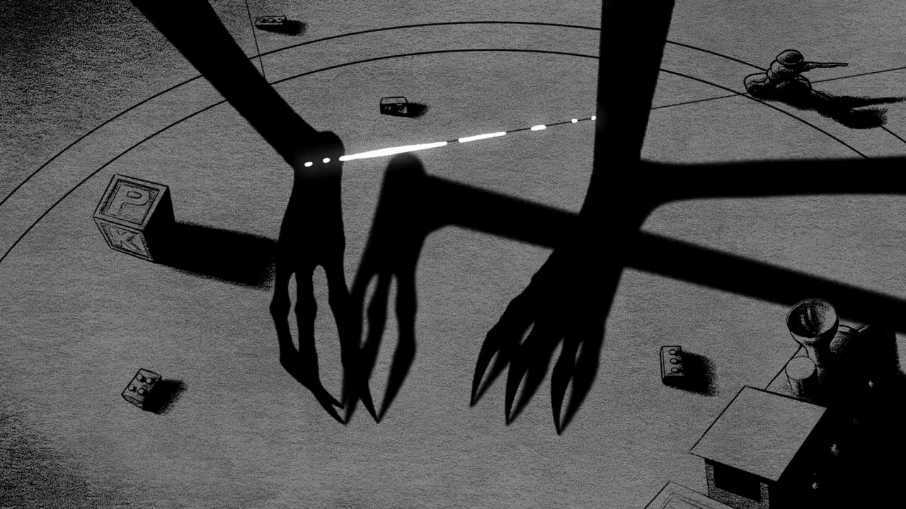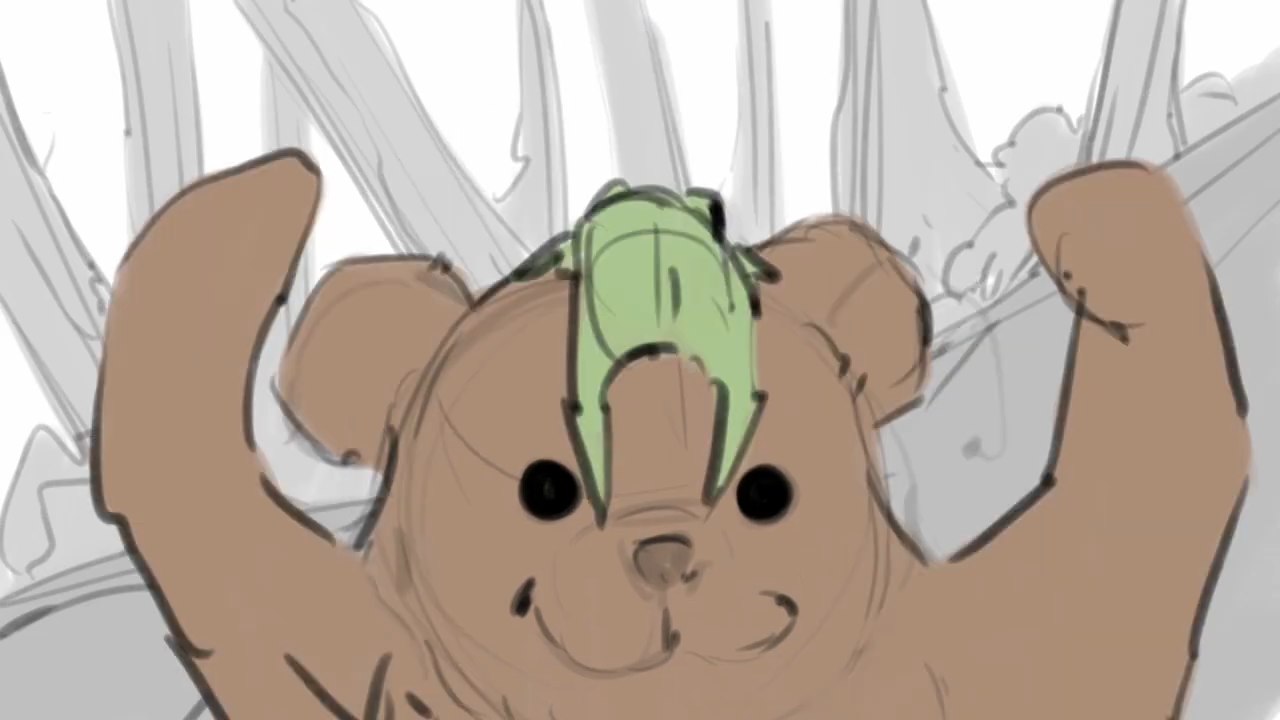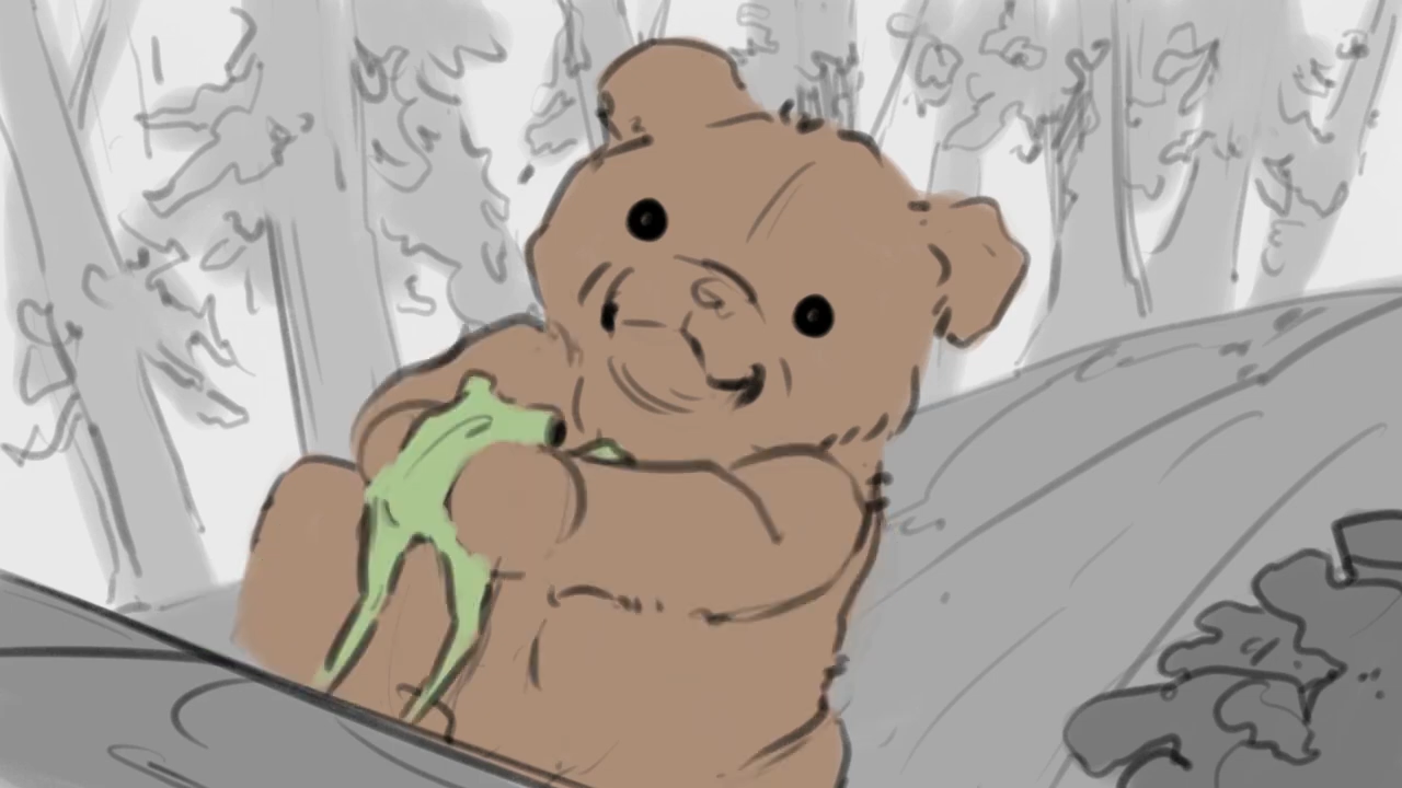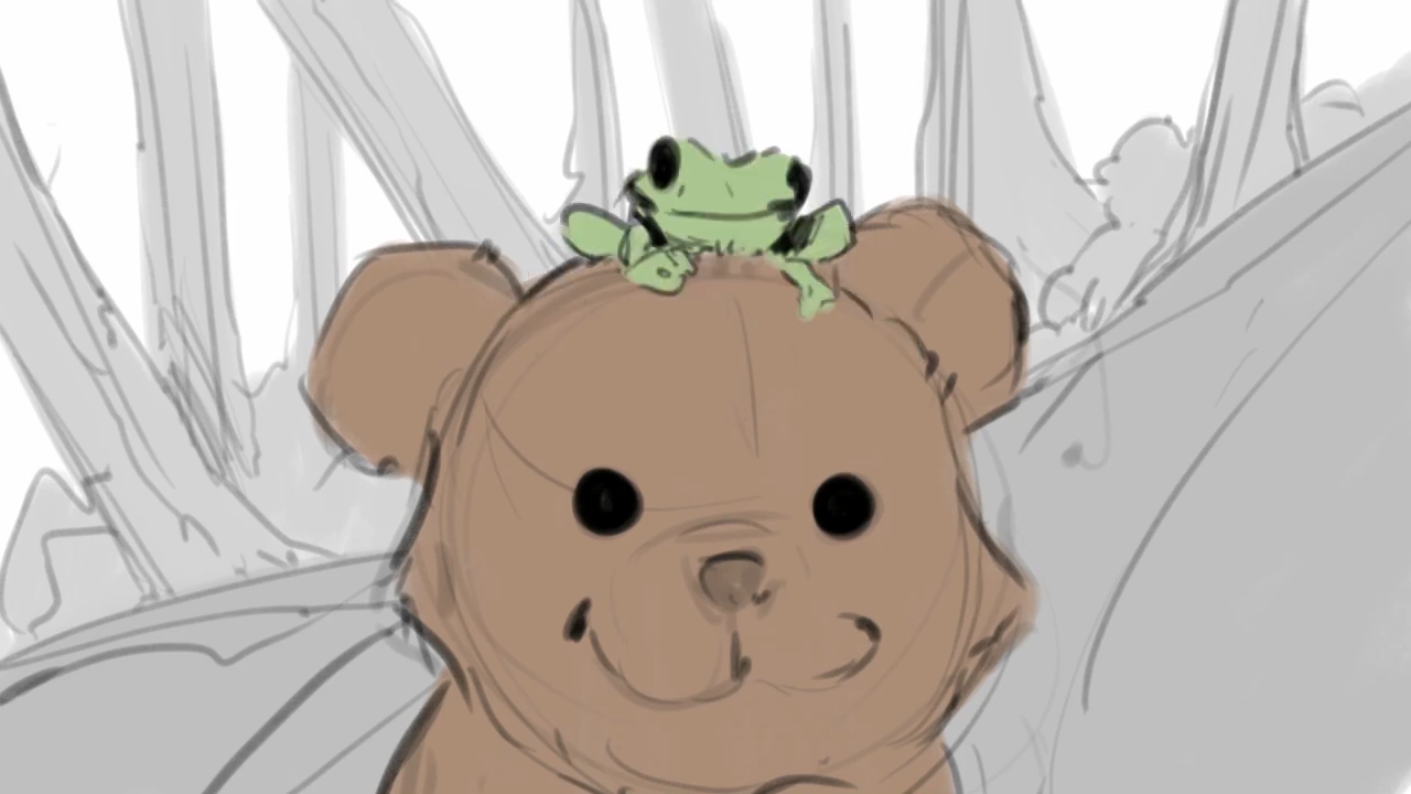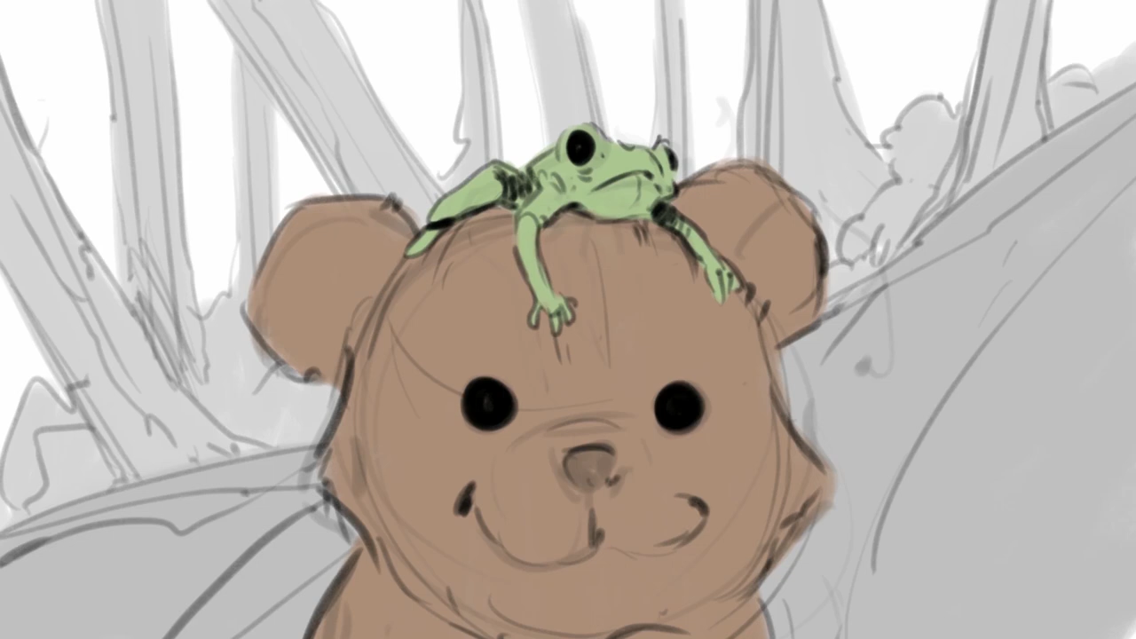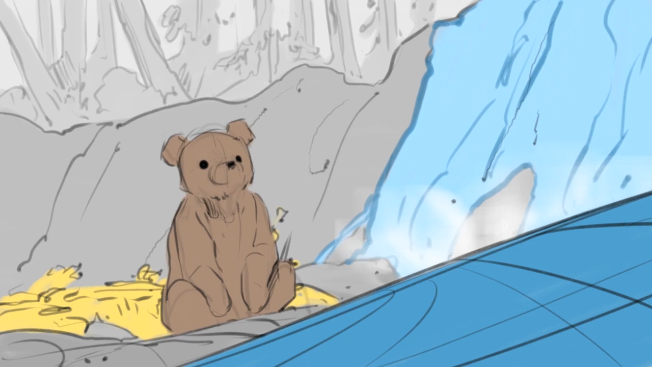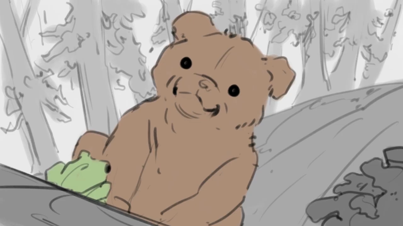 Ici, nous suivons un ourson en peluche qui chaque nuit protège son enfant d’un monstre qui hante la chambre.