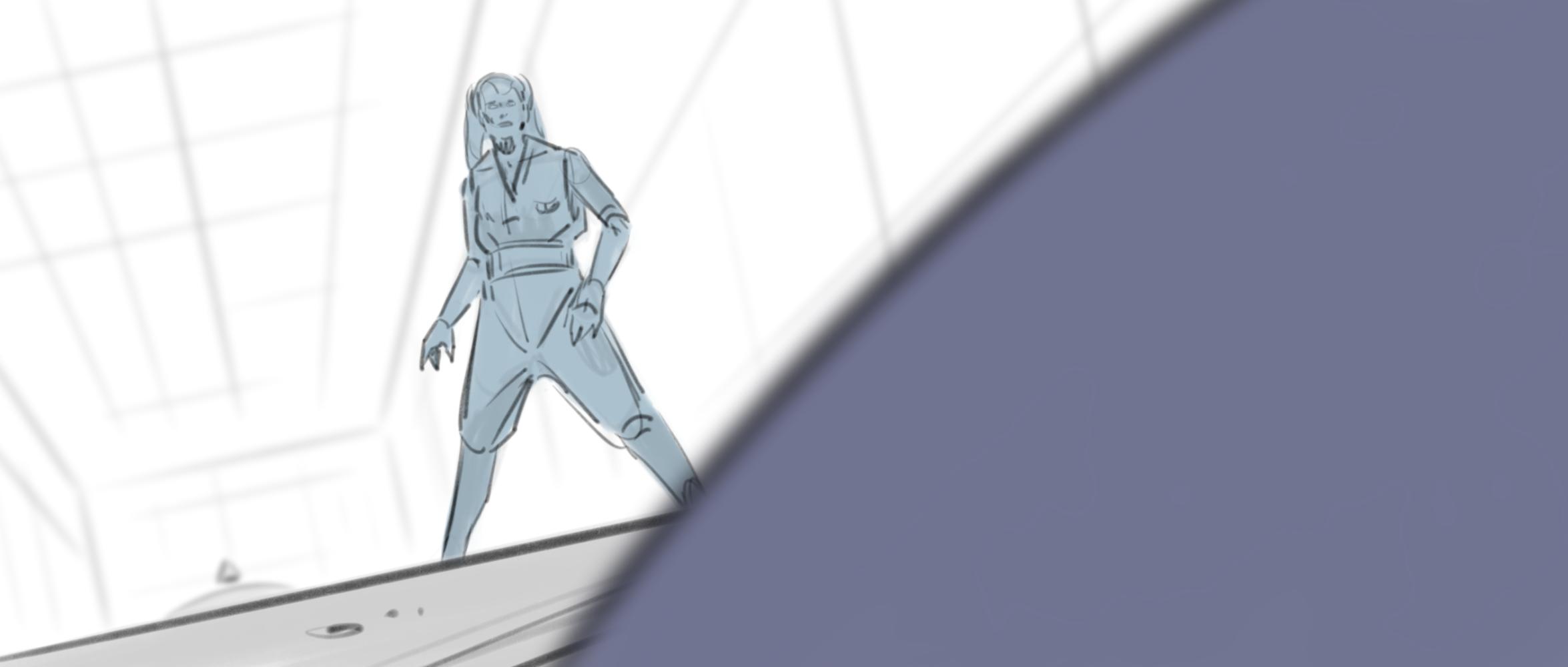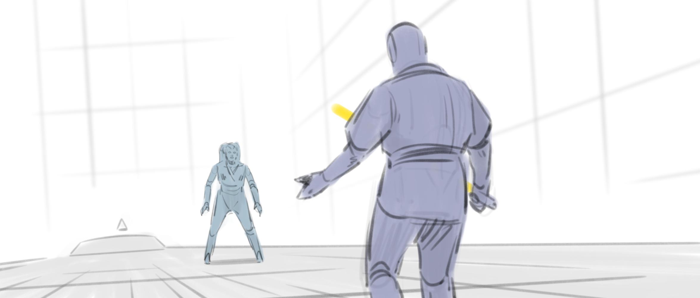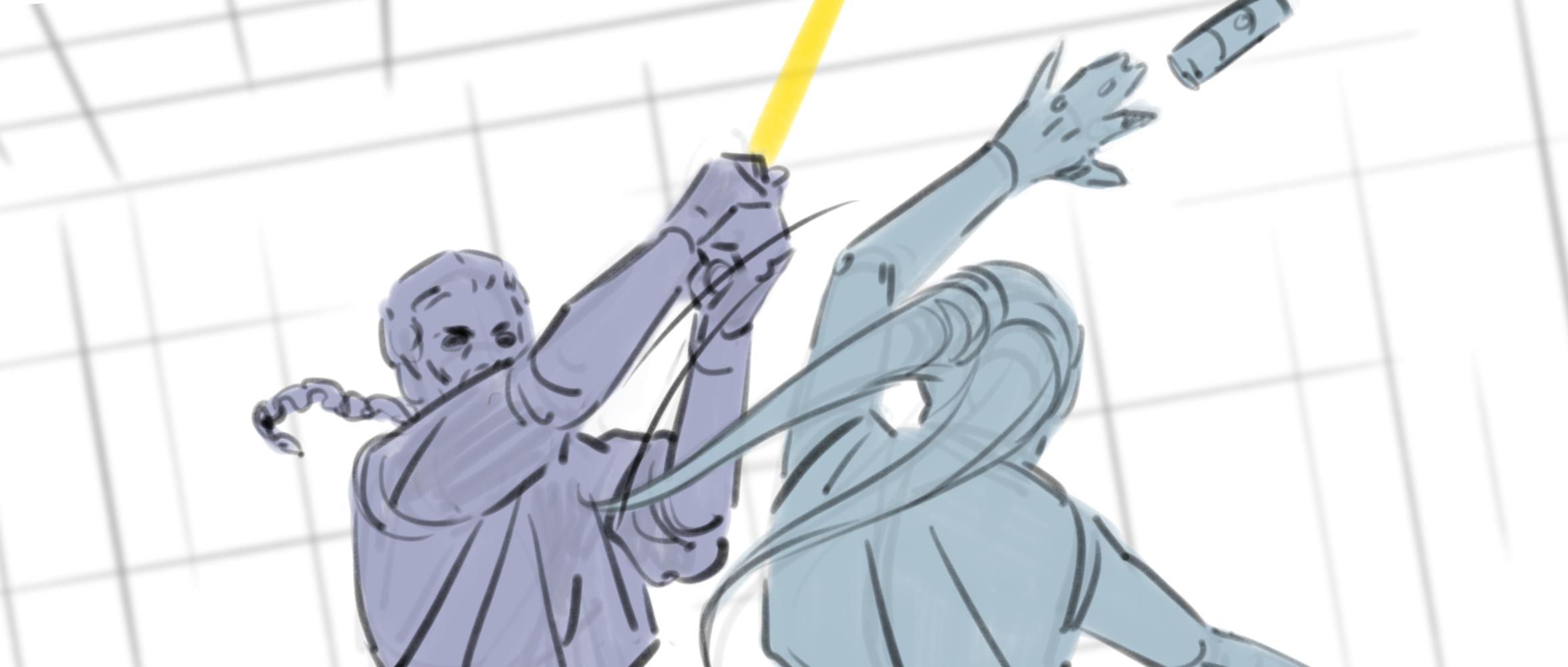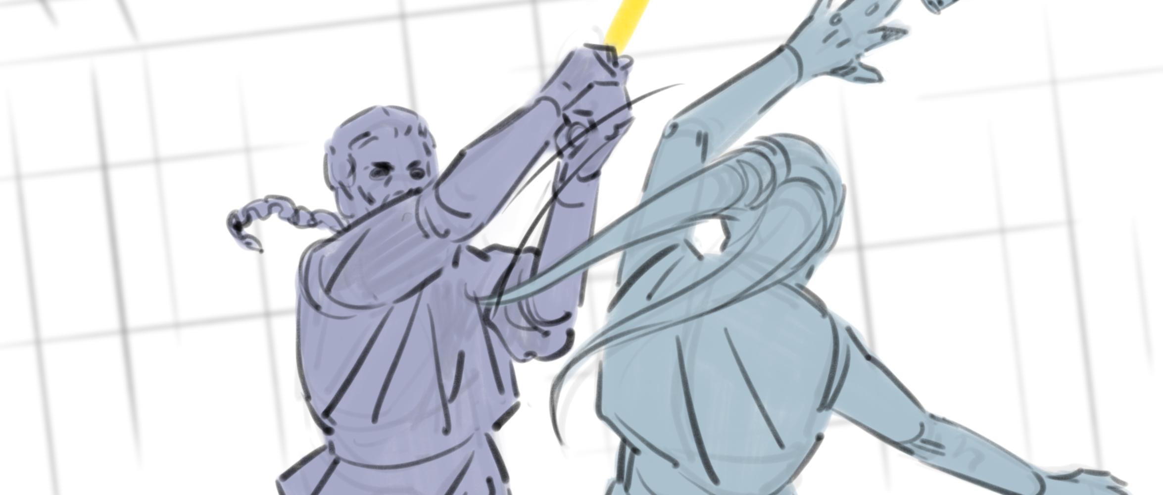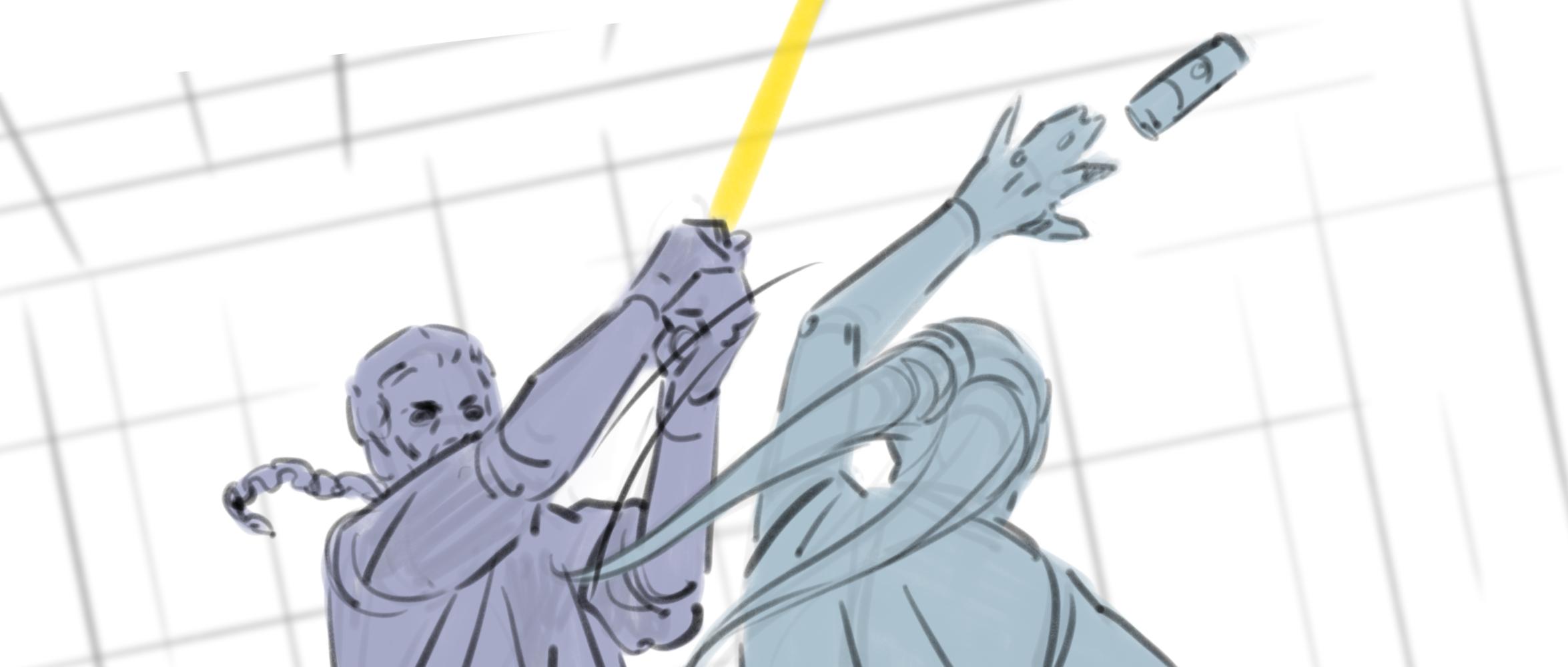 Ici, l’enjeu est avant tout de rendre l’action lisible et dynamique, notamment par un travail spécifique sur la spatialisation et la synthèse de poses clés.