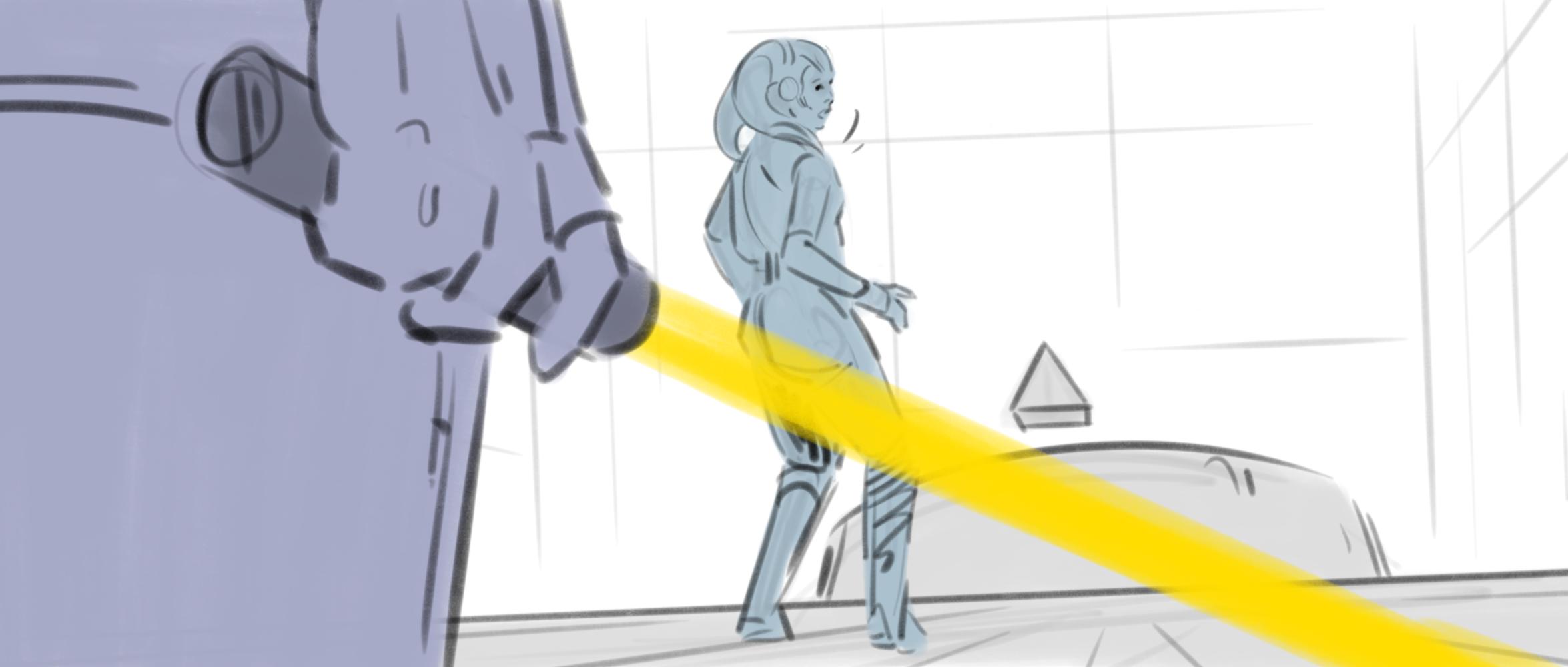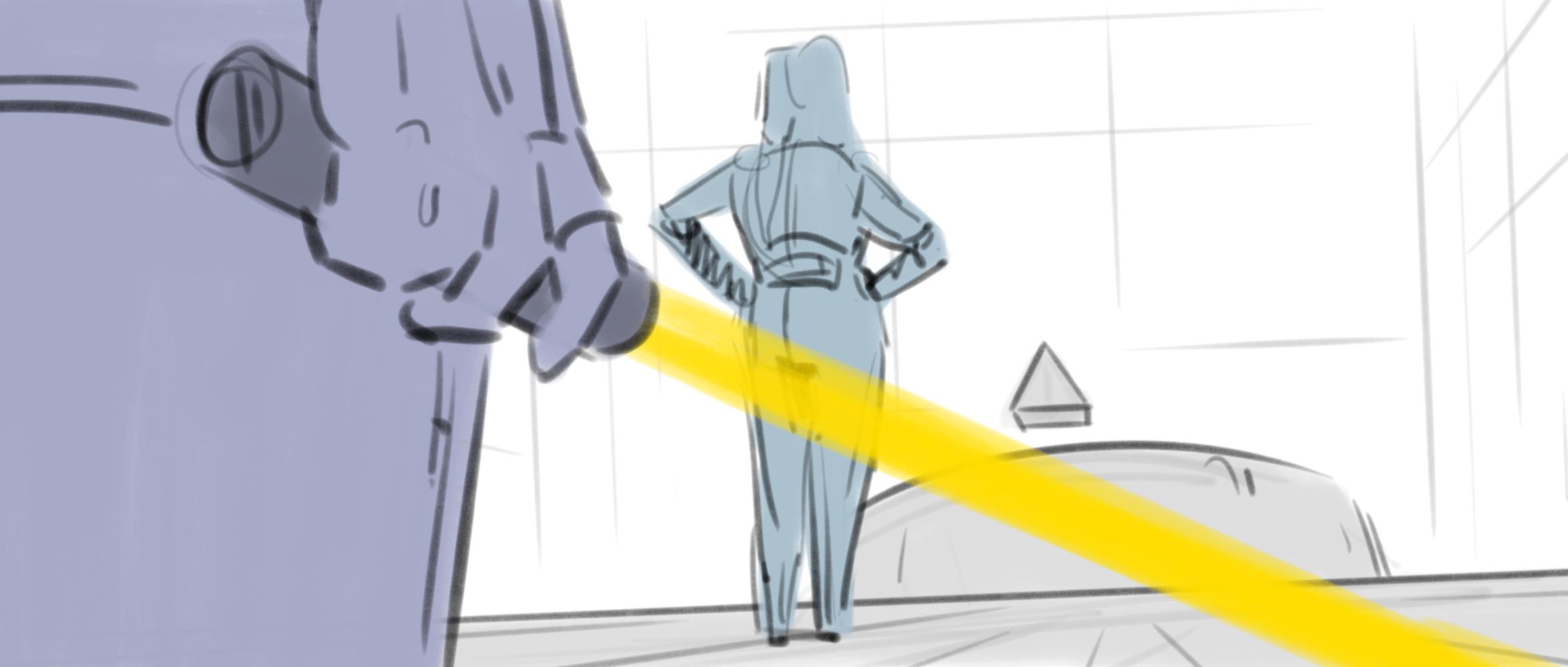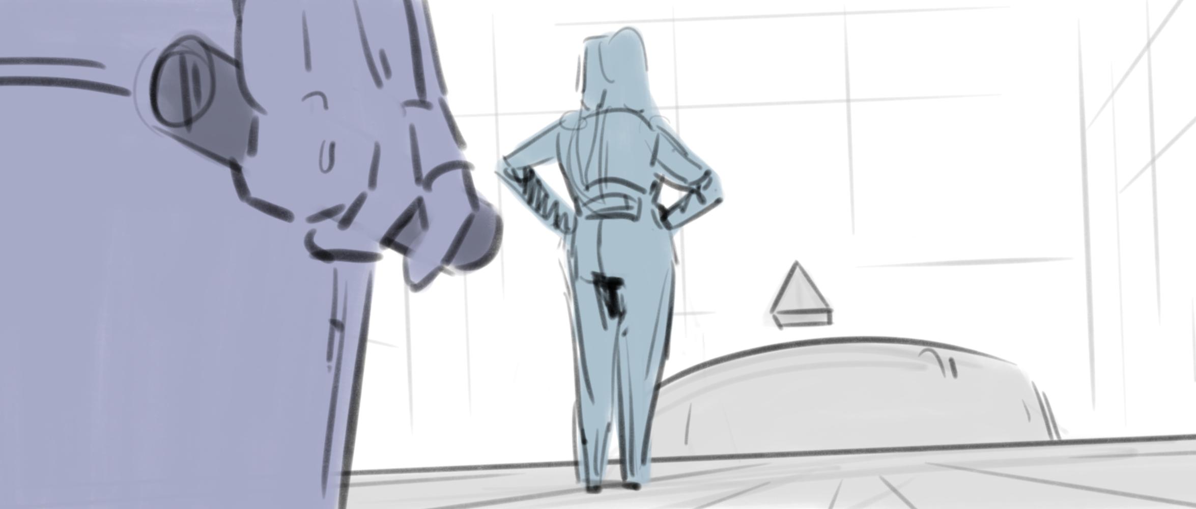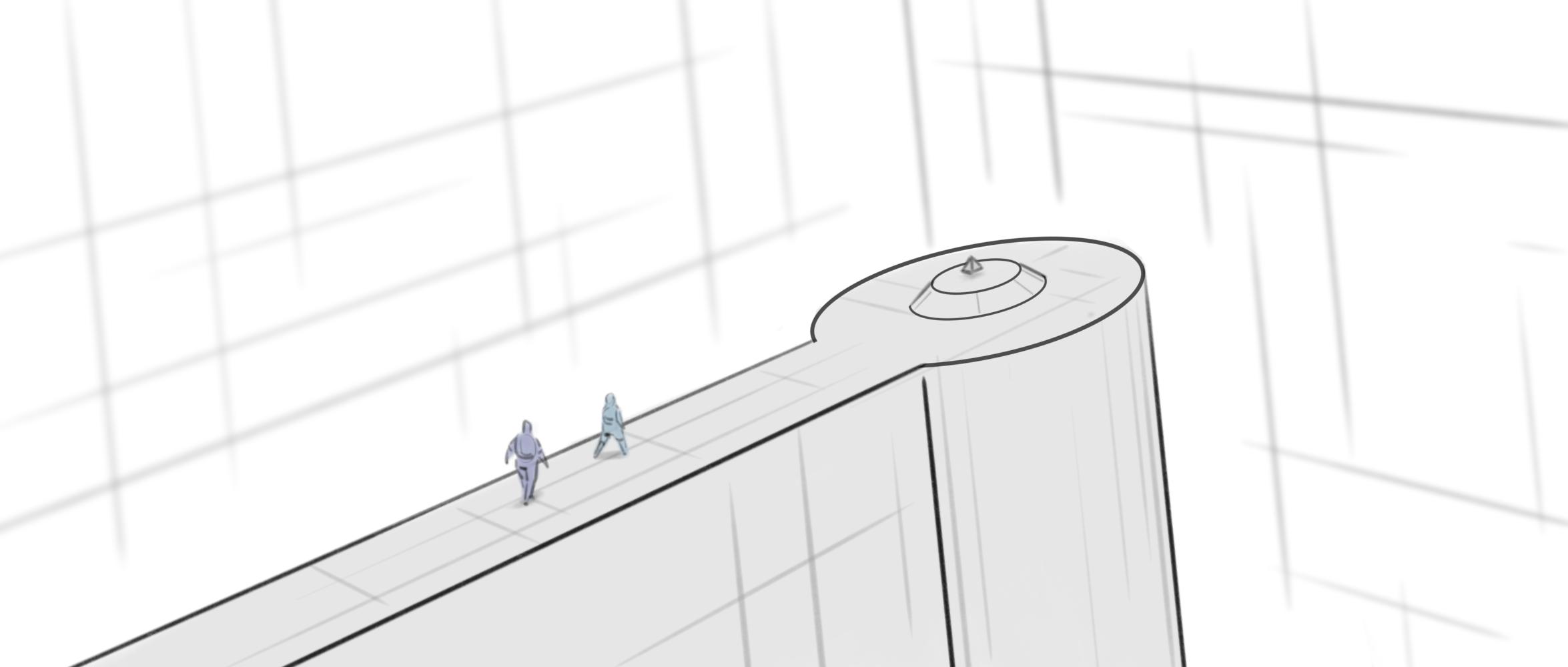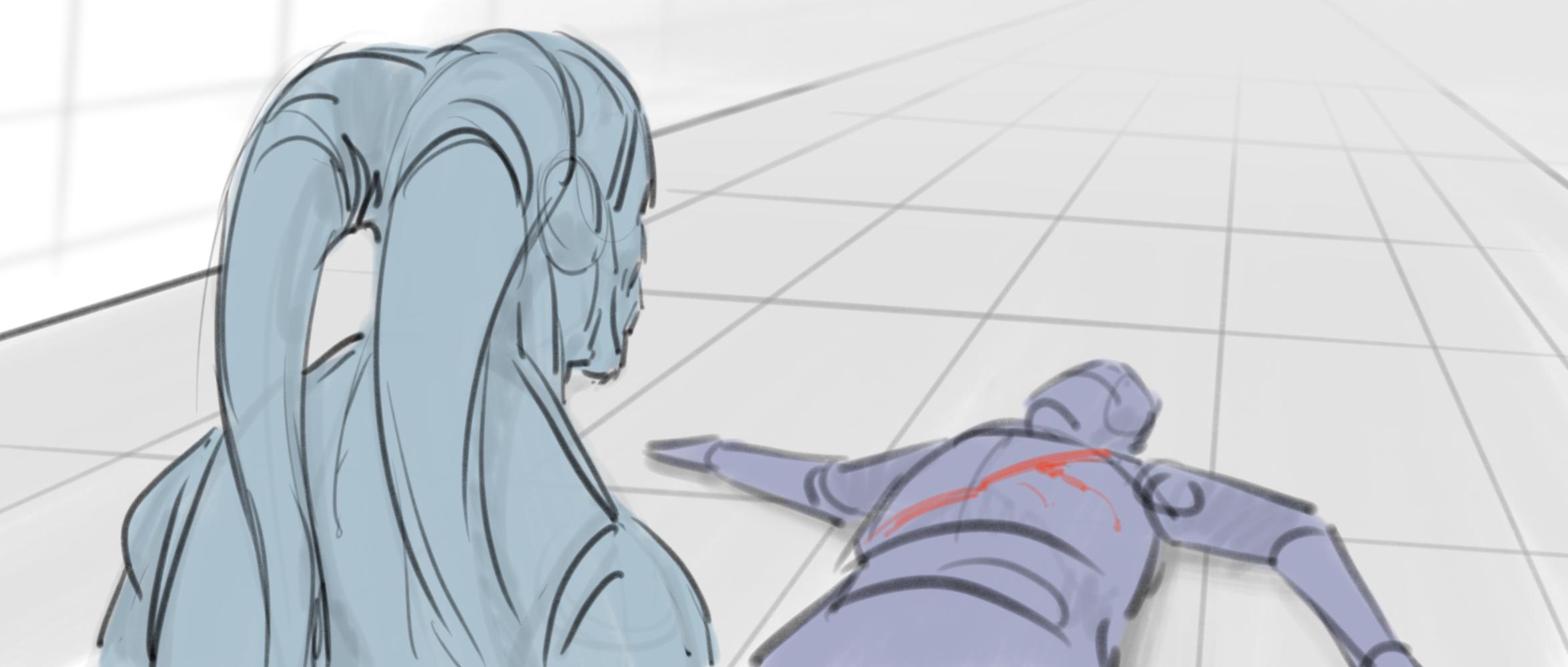 Ici, l’enjeu est avant tout de rendre l’action lisible et dynamique, notamment par un travail spécifique sur la spatialisation et la synthèse de poses clés.
