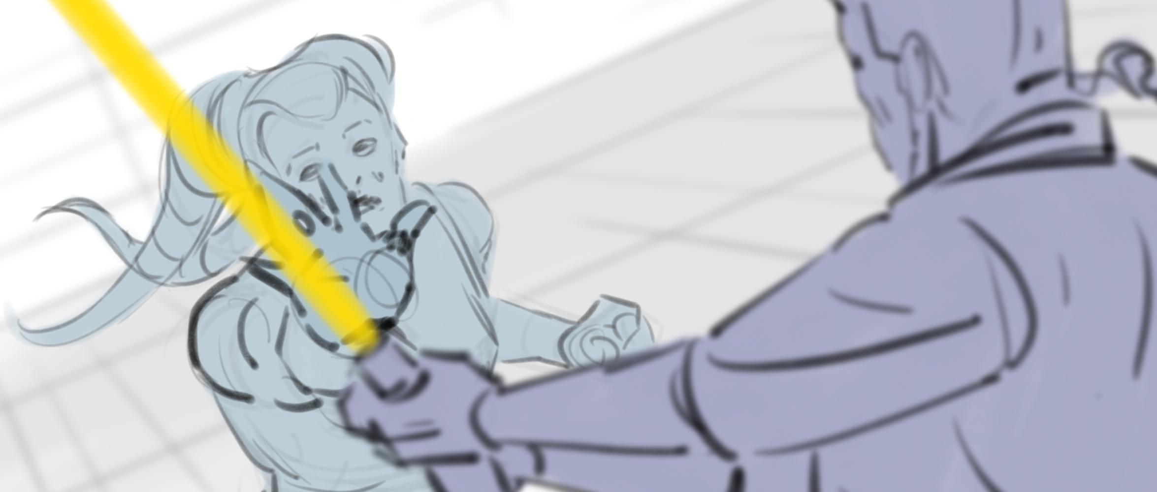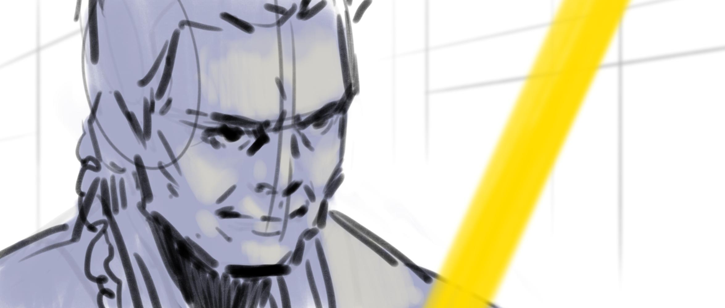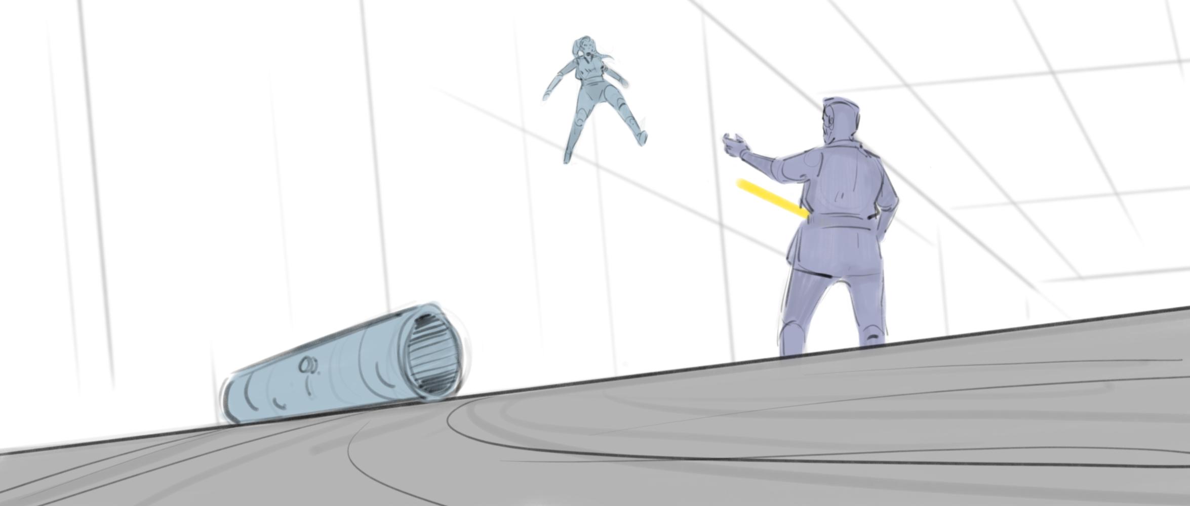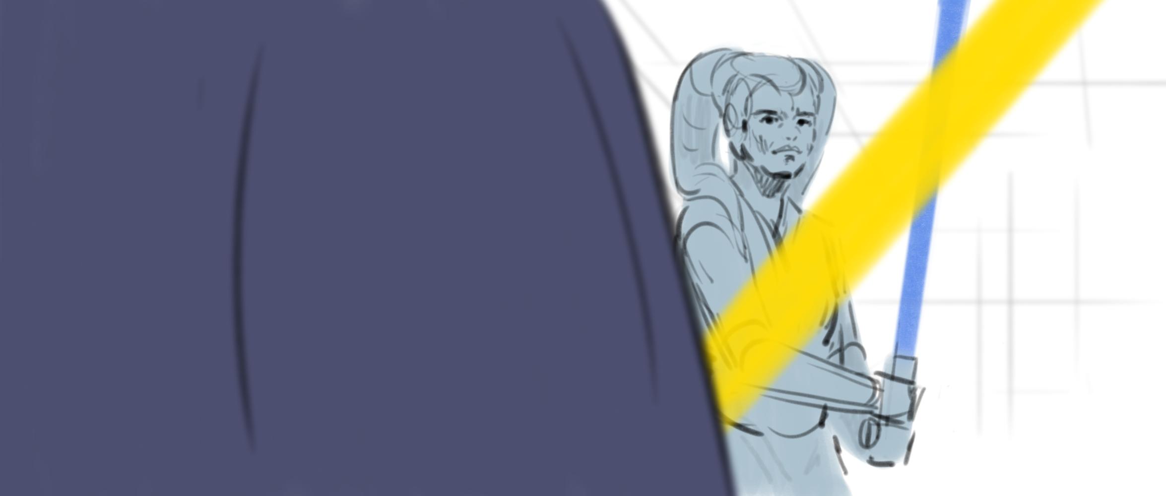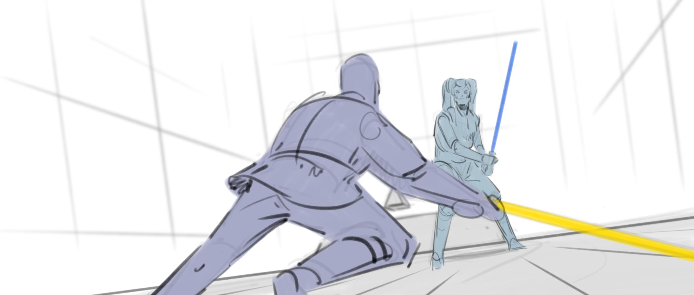 Scène de duel au sabre dans l’univers de Star Wars. En effet, cette franchise offre une grande variété de situations au moment de construire les scènes de duel.