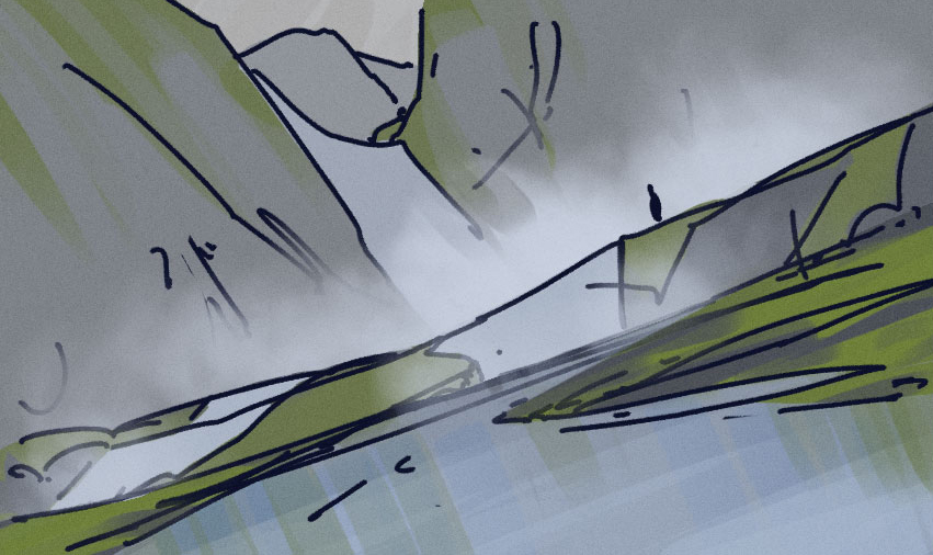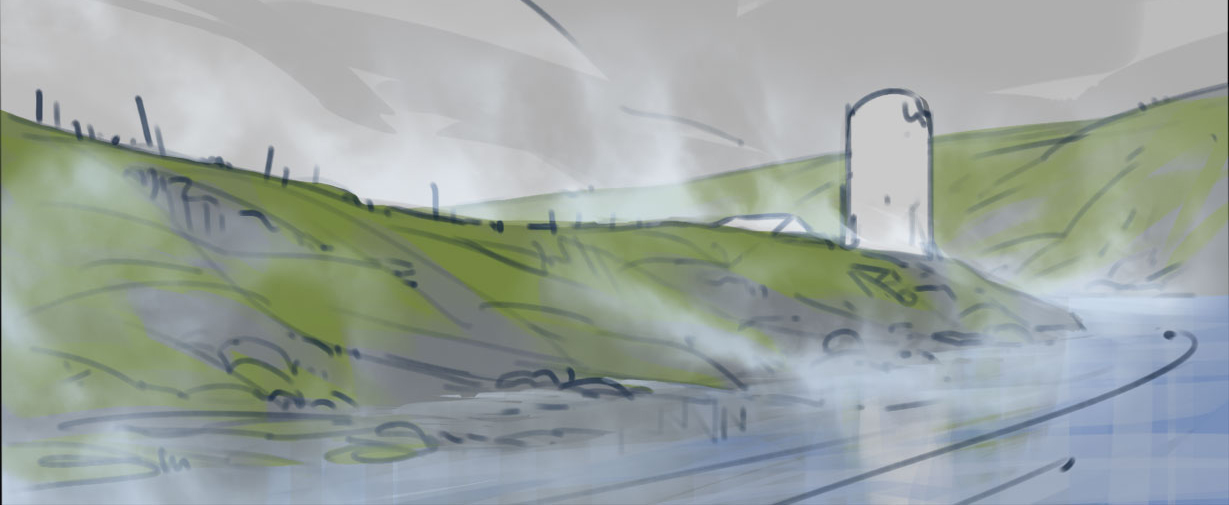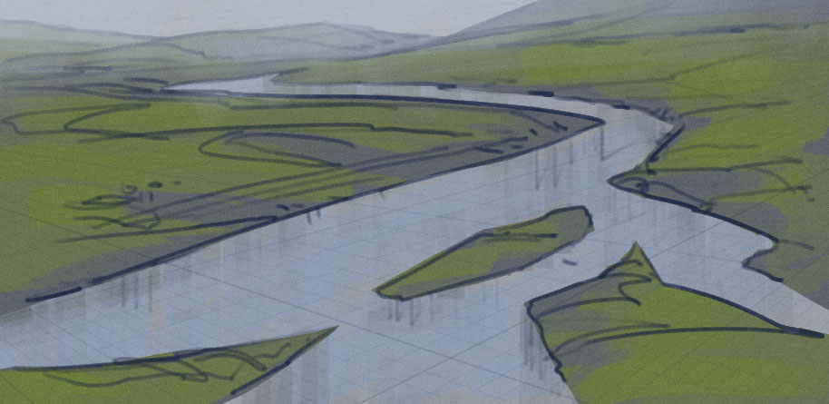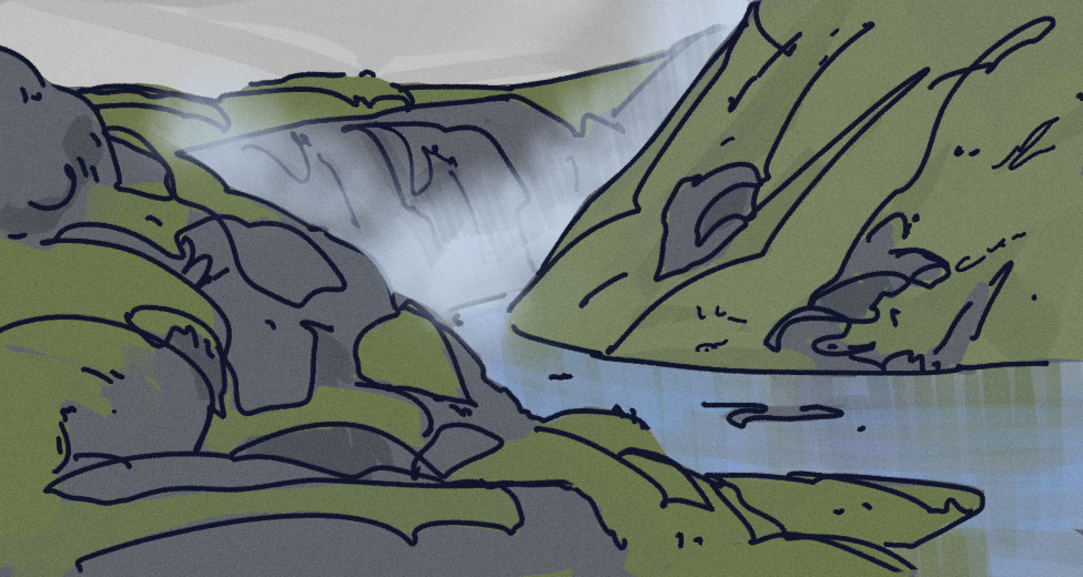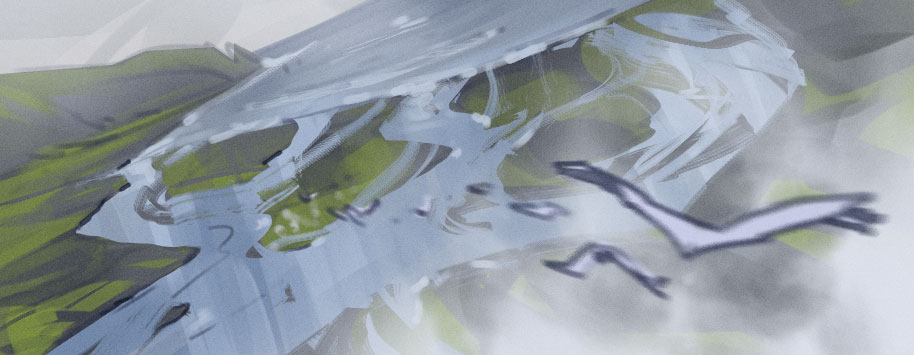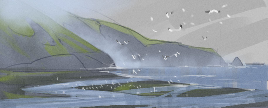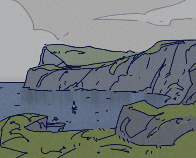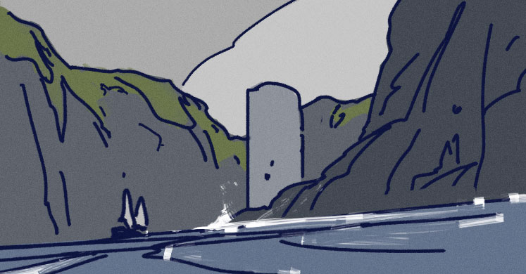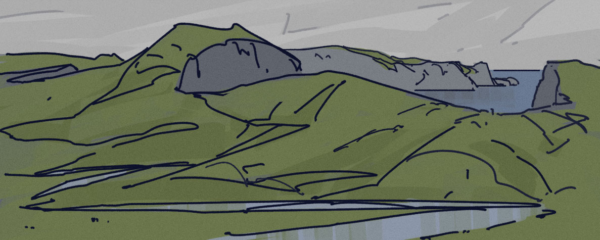 Ces recherches s’attardent avant tout sur la géographie de l’île inspirée par Santorin et sa caldeira caractéristique.